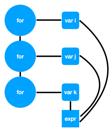 说完了对搜索方法和训练采样方法的一些魔改方法之后,下面应该要说一些对于 AutoTVM 的核心 cost model 的魔改方法了。 目前对于 cost model 的研究集中于 GNN 上面,第二届TVM与深度学习编译器会议上面有一个 UW 的 Talk,题目是 Graph Convolutional Cost Models for TVM ,还有一篇 Simulating Execution Time of Tensor Programs using Graph Neural Networks,ICLR 2019 workshop at Representation Learning on Graphs and Manifolds。这两个工作基本是一样的,都是用 GCN 去优化 cost model。然而怪异的是两个工作的结果都是跟 XGB 在一个类似于估计运行时间的数据集上面的对比,没有最后 end-to-end 的效果提升。 两个工作都是用 AST 建图,大概长这样: