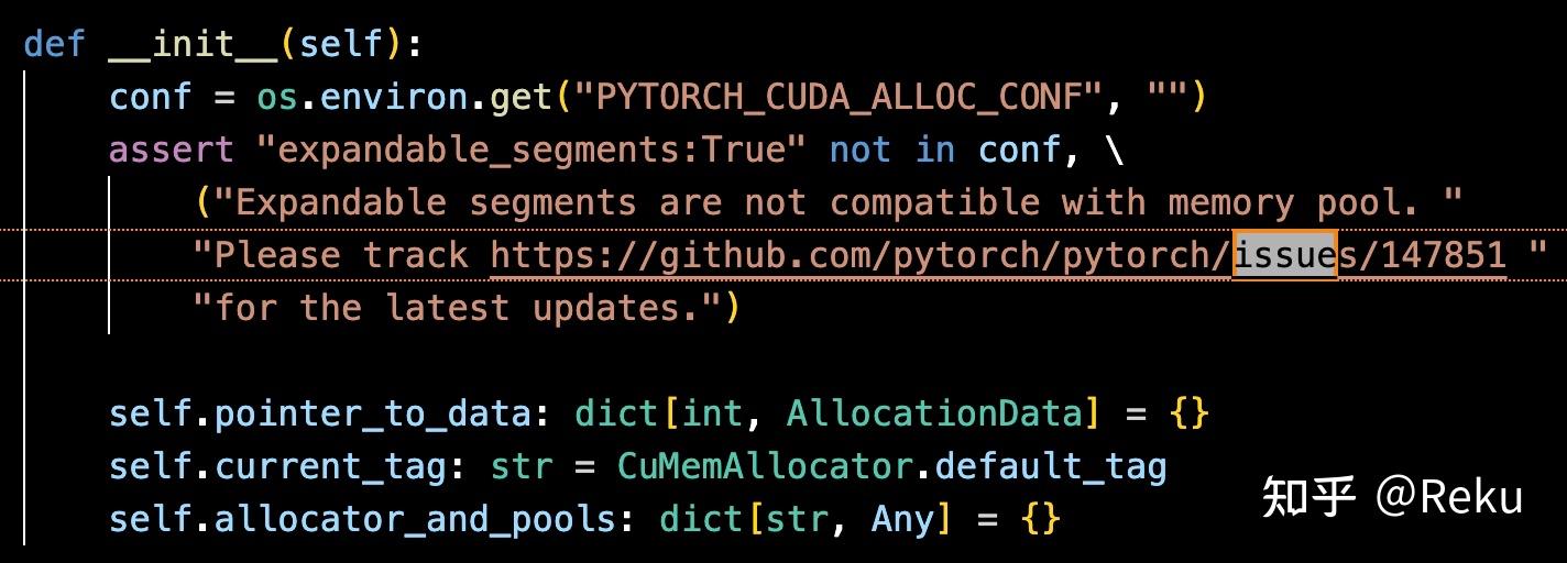 用这个就不能用torch的expandable_segments了,而强化学习场景的load/offload又特别频繁,碎片会比较严重,长稳训练可能会出现一些问题。
